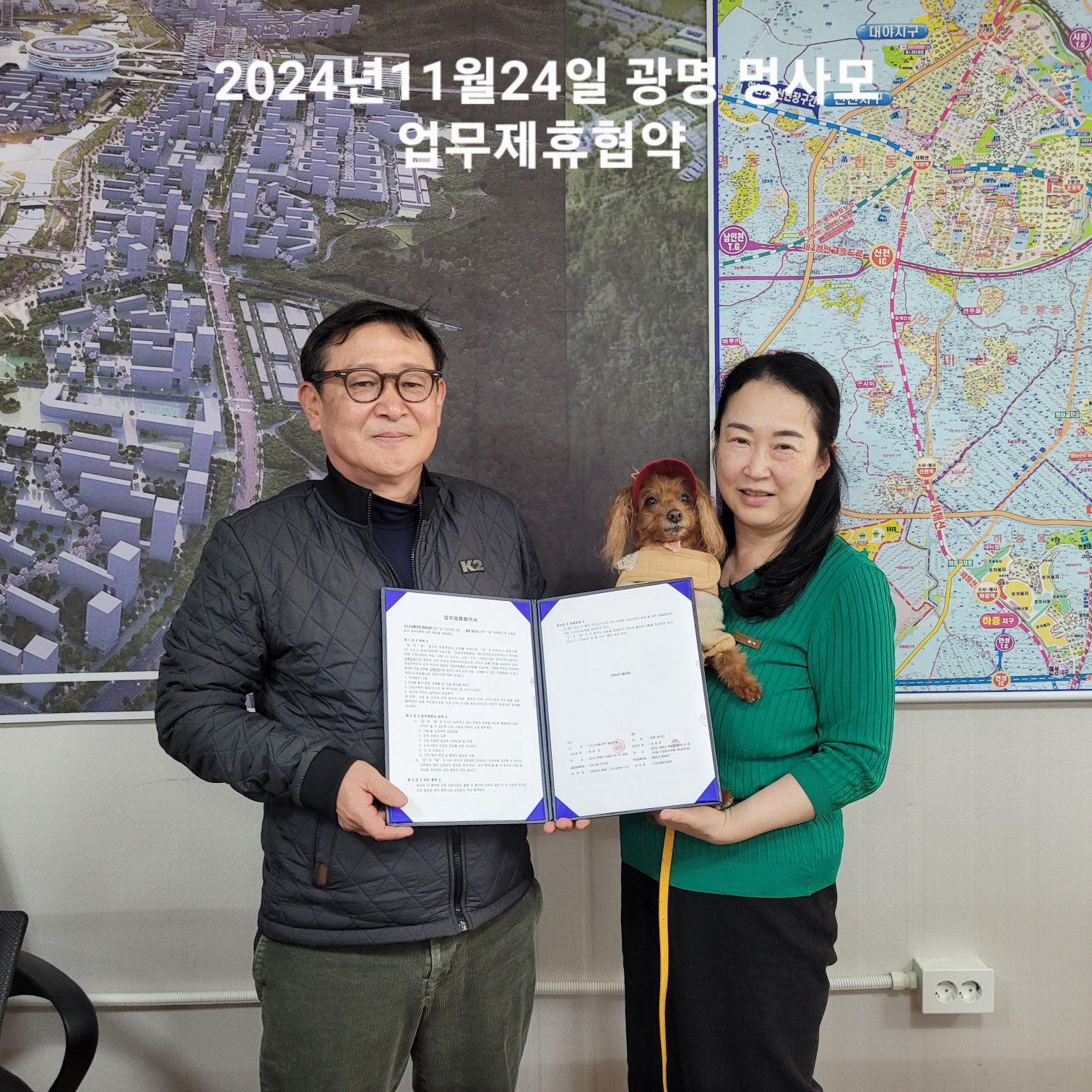 신도시개발시 지장물 철거 등 이주에 따라 발생하는 유기묘.유기견 관리대책 마련을 위하여 2024년 11월 24일 '광명 멍사모'와 업무제휴협약을 체결하였습니다.